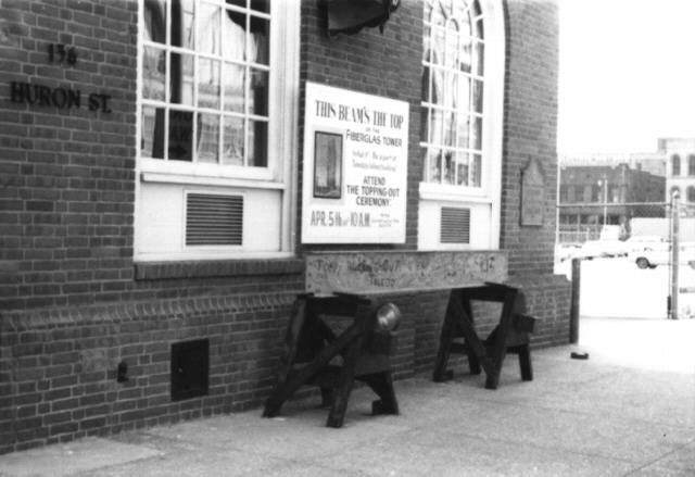 1968: The topping out ceremony is held for the new Fiberglas Tower on St. Clair Street. At 30-stories high, the building will become the city's tallest building and will serve as the world headquarters of Owens Corning. The photo above shows the last beam waiting to be used for the topping-out ceremony in front of WGTE's downtown studio.
